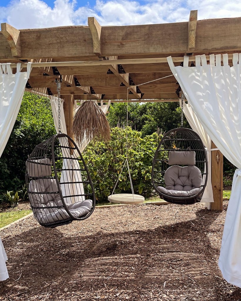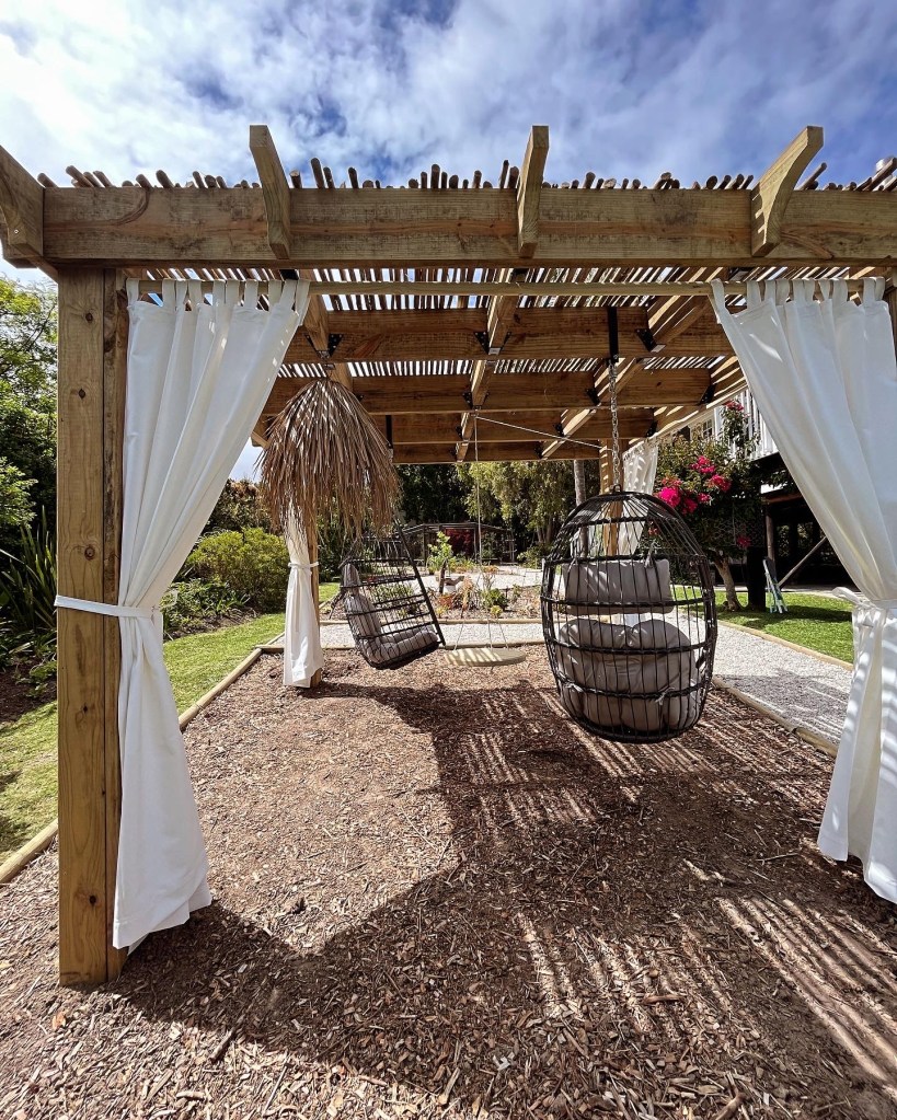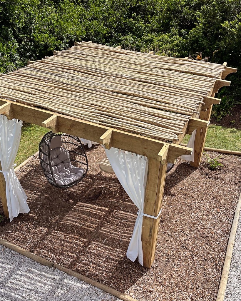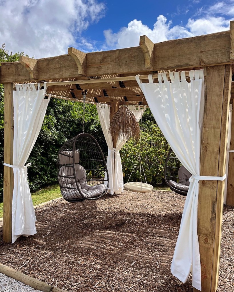 The project involved the addition of white outdoor curtains to the pergola at one end of the garden. I selected a high-quality outdoor fabric in white to ensure the curtains could withstand the outdoor elements and maintain their elegance over time. To make them more practical, I designed the curtains with loops that fasten with velcro. This clever design allows the clients to easily remove the curtains for washing when needed, ensuring that the space remains neat and fresh.