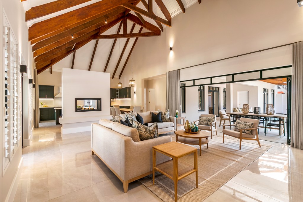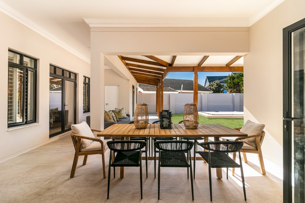 A significant part of this project was creating custom furniture for the communal areas of the home. One key piece was the dining table, which the client was particularly particular about. After exploring various options, including teak sleeper wood, the client ultimately chose a Kiaat table, which perfectly complemented the home’s aesthetic and brought a sense of warmth and luxury.
