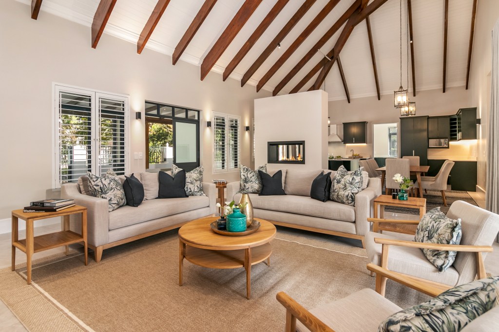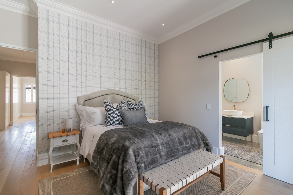 This holiday home renovation project in Leisure Isle, Knysna, was designed for a family who primarily lives in Johannesburg. The home’s location near the beach made it the perfect getaway for the family, and my goal was to create a calm and serene environment where they could relax and enjoy quality time together. The project involved a complete interior transformation, from wallpaper and furniture (both indoor and outdoor) to area rugs, runners, mirrors, linen, throws, and scatter cushions — all with a focus on comfort and low maintenance.