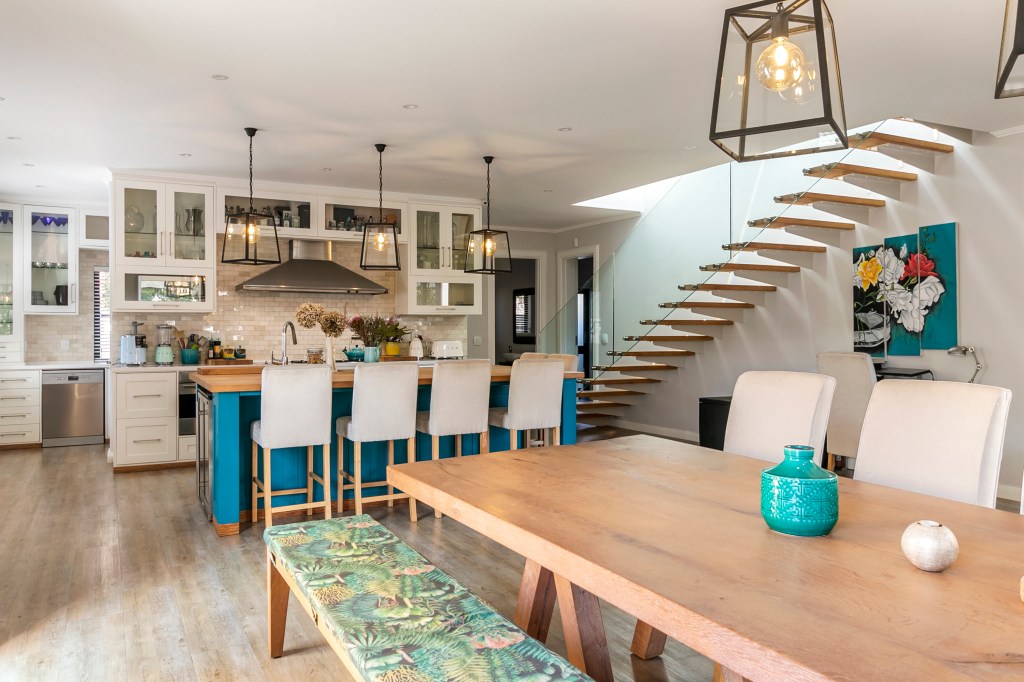 Located in a prime holiday destination on Leisure Isle, Knysna, this five-bedroom family holiday home was designed with entertaining and family living in mind. The home’s layout and design focus on blending comfort, functionality, and style, creating a spacious retreat that enhances the relaxed beach house vibe.