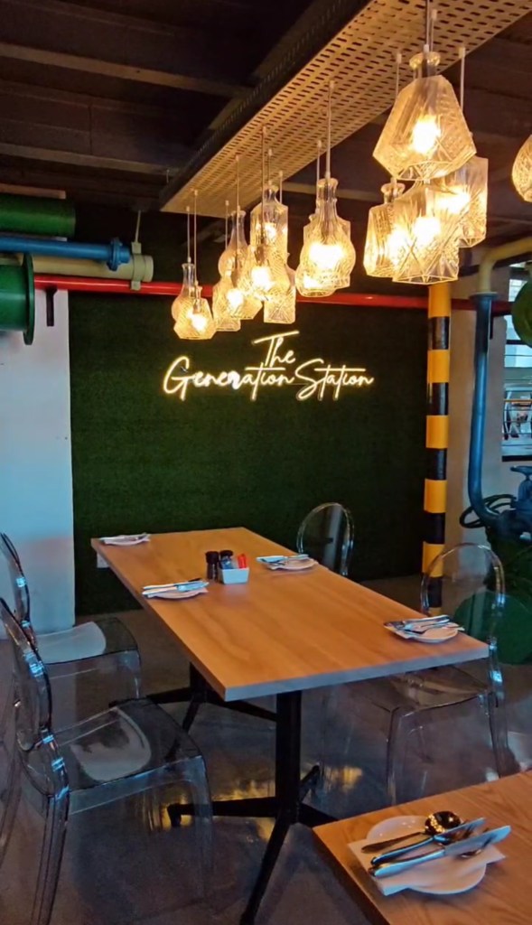 In the lower turbine area, we continued the use of ghost chairs to maintain a sense of openness. A green AstroTurf installation featuring a neon “The Generation Station” sign gave this section a distinct identity while celebrating the heritage of the turbines.